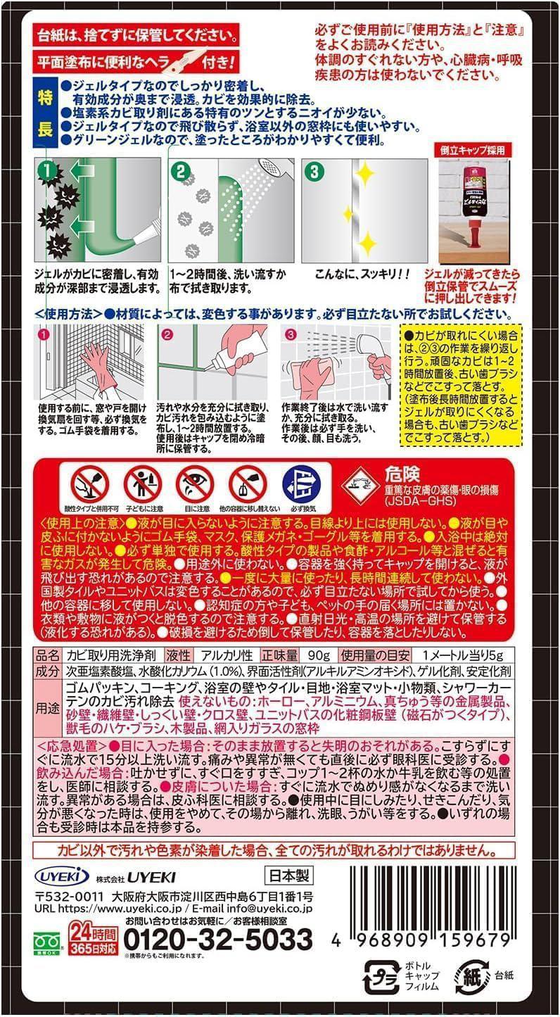 ・Uses: Removing mold stains from rubber packing, caulking, bathroom walls, tiles, joints, bathroom mats, small items, and shower curtains.