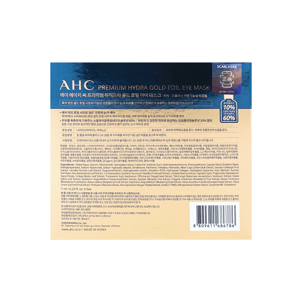 AHC Premium Hydra Gold Foil Eye Mask 韩国AHC高级水润金箔眼膜 5 Sheets