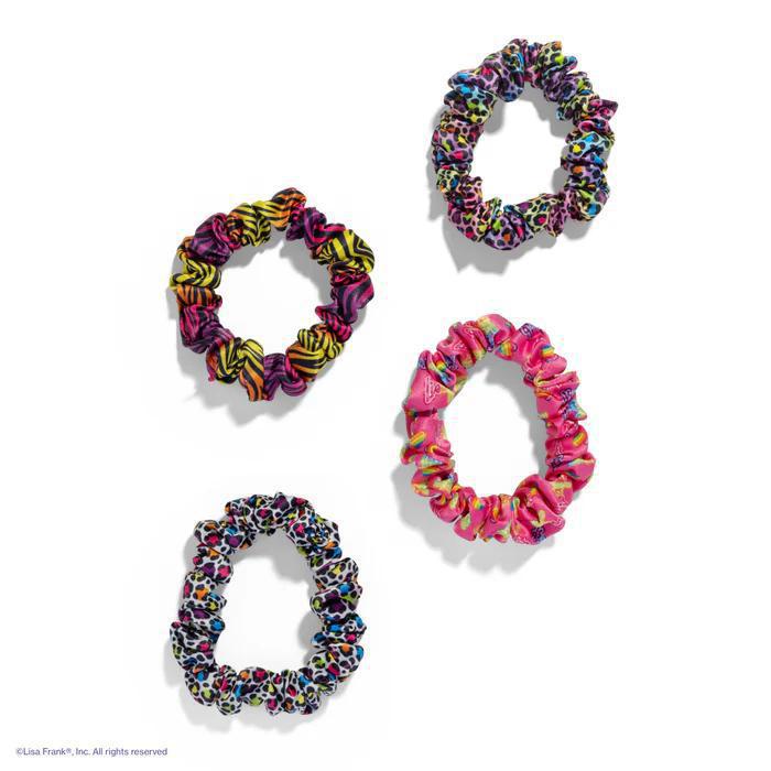 - Each package includes four satin scrunchies in rainbow leopard prints inspired by the iconic Lisa Frank aesthetic