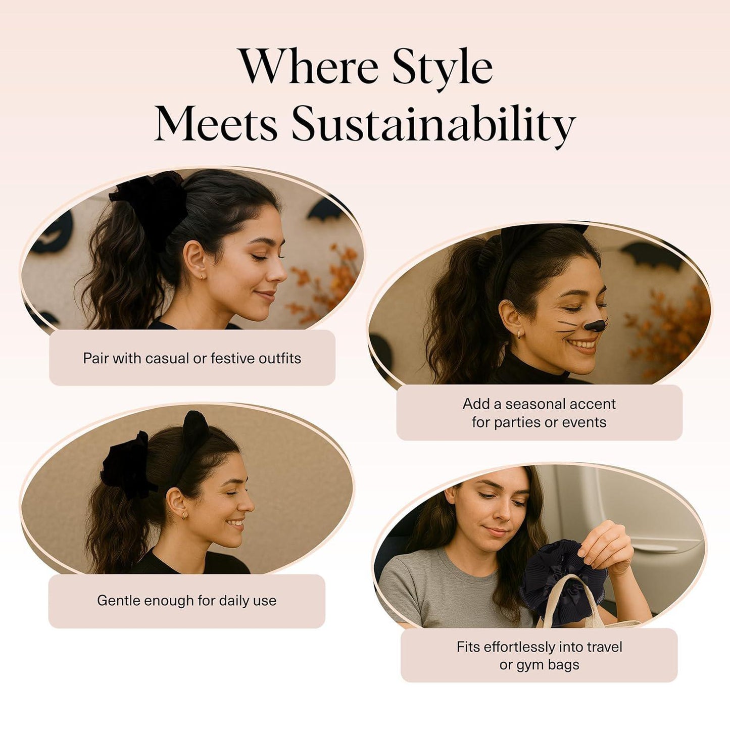 - EASY HAIR TIE FOR ALL STYLES: Designed for quick styling, this black scrunchie doubles as a practical hair tie for ponytails, messy buns, or elegant updos. Use it like your go-to elastic hair ties when creating everyday looks or spooky-season hairstyles. A must-have among scrunchies for women, it blends durable construction with soft fabric for comfort and hair care without snagging or stress.