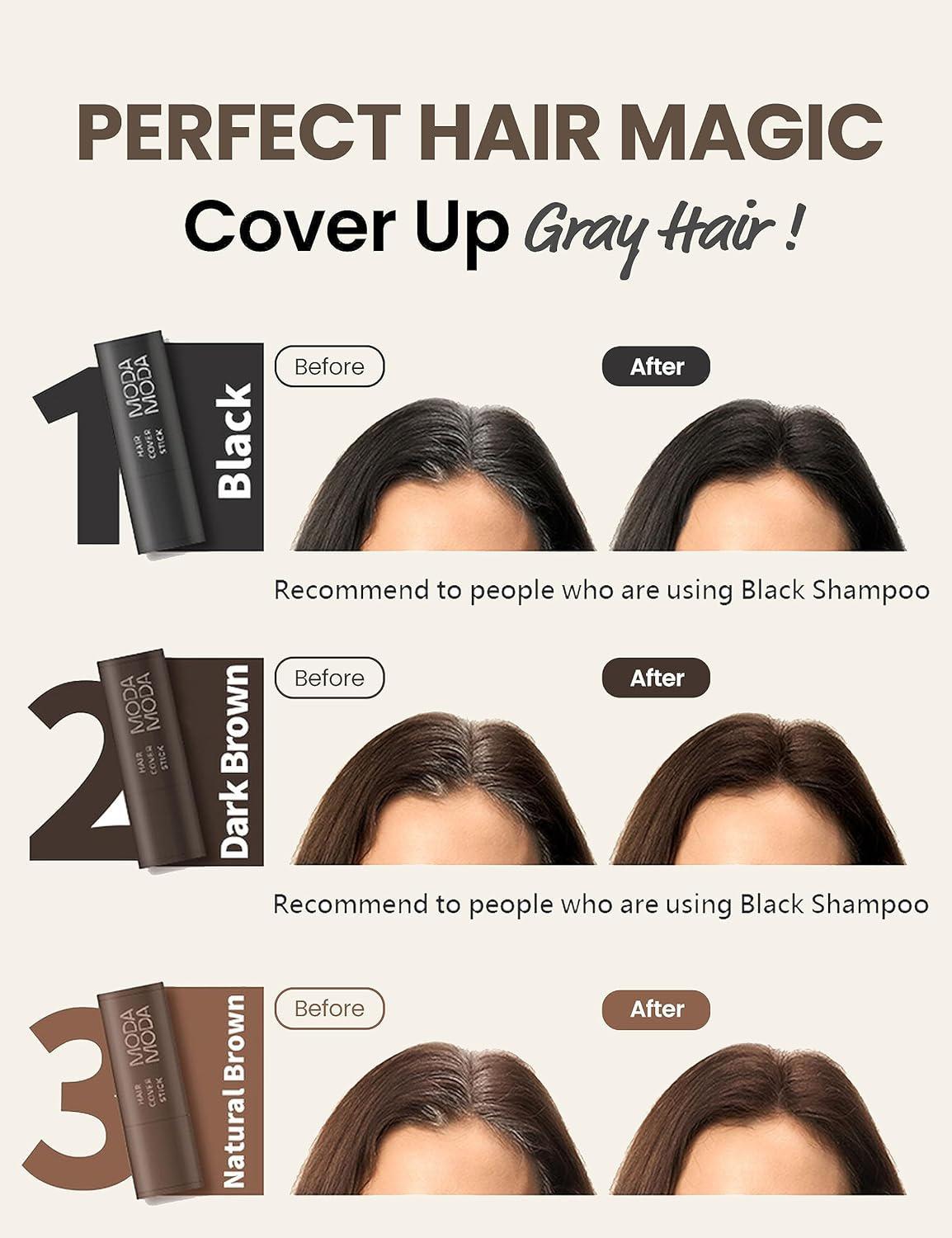 GRAY COVERAGE MAGIC. Say goodbye to gray hair with MODAMODA's hair color cover-up stick! It effectively conceals gray roots and blends seamlessly with your natural hair color for a natural-looking finish. Enjoy the confidence of vibrant, youthful-looking hair without worrying about unsightly grays.