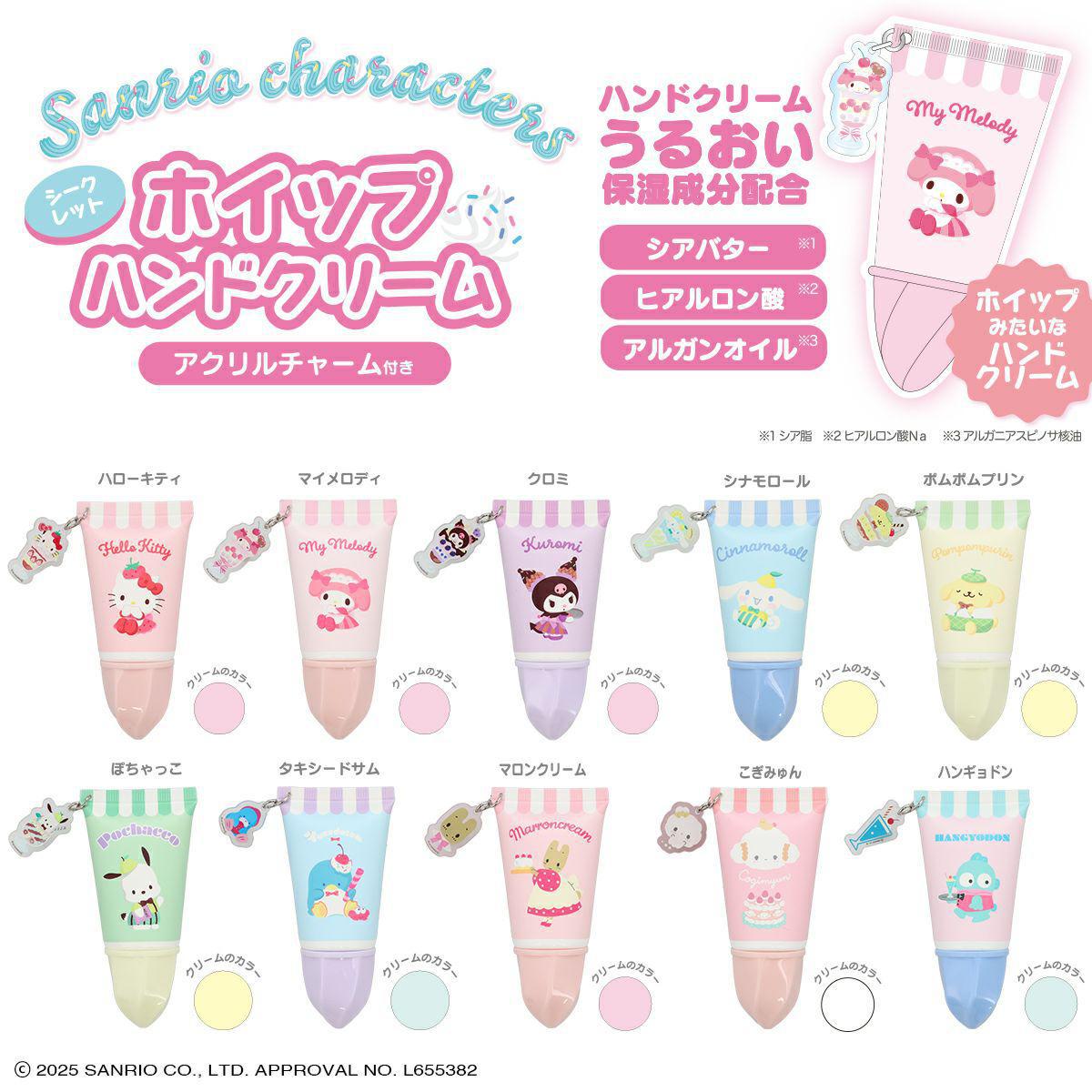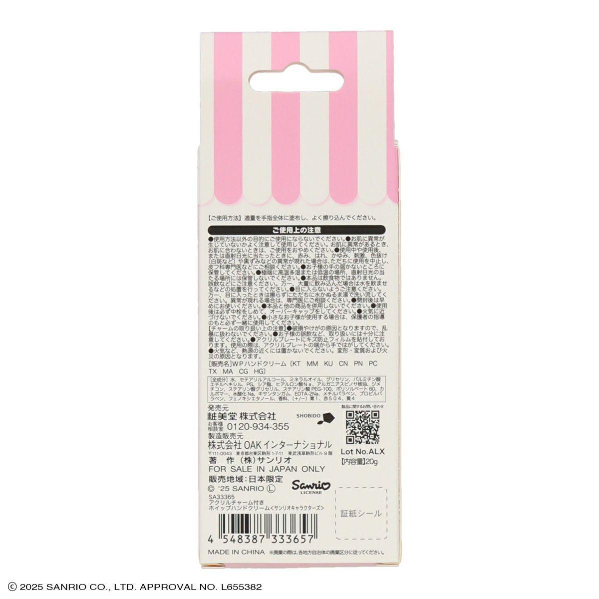 Sanrio's super cute blind box hand cream! Each box is a surprise, including 1 of 10 limited edition designs + character acrylic pendant. The creamy texture absorbs instantly, giving you soft and moisturized hands!