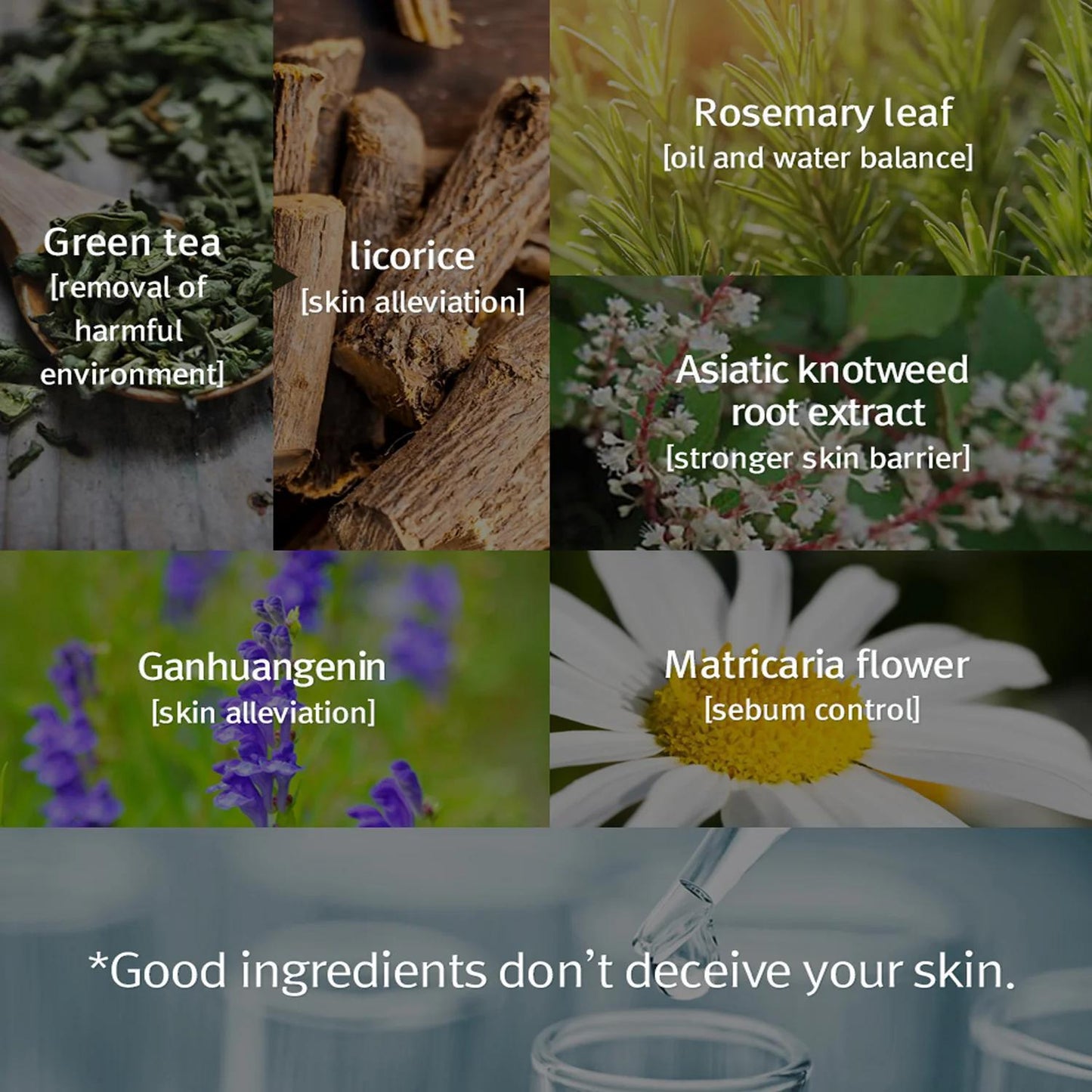 Water Cocamidopropyl Betaine Sodium Methyl Oleoyl Taurate PEG-75 Acrylates Copolymer Glycerin Disodium cocoamphodipropionate PEG-120 Methyl Glucose Dioleate Dimethyl Sulfone Pyridoxine HCl Salix Alba (Willow) Bark Extract Forsythia Suspensa Fruit Extract Butylene Glycol Centella Asiatica Extract Polygonum Cuspidatum Root Extract Scutellaria Baicalensis Root Extract Camellia Sinensis Leaf Extract Glycyrrhiza Uralensis (Licorice) Root Extract Chamomilla Recutita (Matricaria) Flower Extract Rosmarinus Officinalis (Rosemary) Leaf Extract Sodium Chloride Copper Tripeptide-1 Allantoin Citric acid Potassium Hydroxide Sodium Benzoate Phenoxyethanol Disodium EDTA