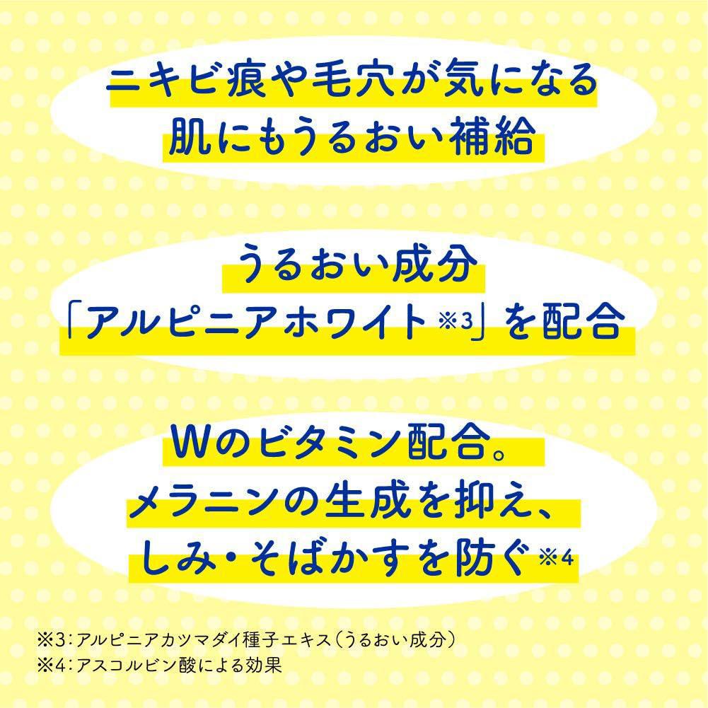 Active ingredients: Ascorbic acid (active vitamin C), pyridoxine hydrochloride (vitamin B6), allantin, isopropylmethylphenol . Other ingredients: 3-O-ethylascorbic acid, L-ascorbic acid 2-glucoside (ascorbic acid), Vitamin C tetraisopalmitate, vitamin E, alpinia cutlet seed extract, lemon extract, grapefruit extract, serine, BG, 1,3-propanediol, 3-methyl-1,3-butanediol, PG, PEG-8, Absolute ethanol, POE / POP decyltetradecyl ether, Na pyrosulfate, edetate, fragrance