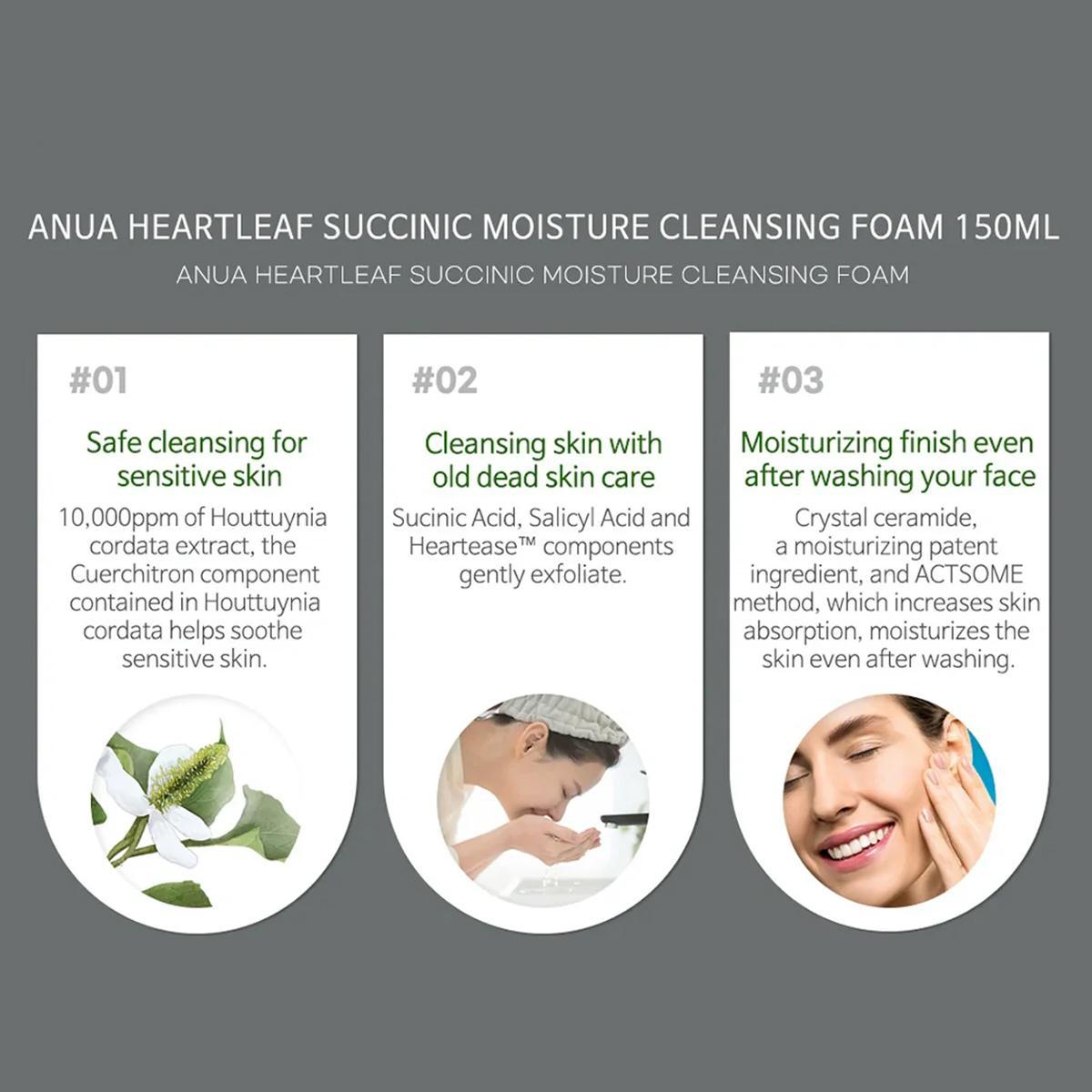 ANUA Heartleaf Succinic Moisture Cleansing Foam 韩国ANUA鱼腥草琥珀酸保湿洁面泡沫 150mL