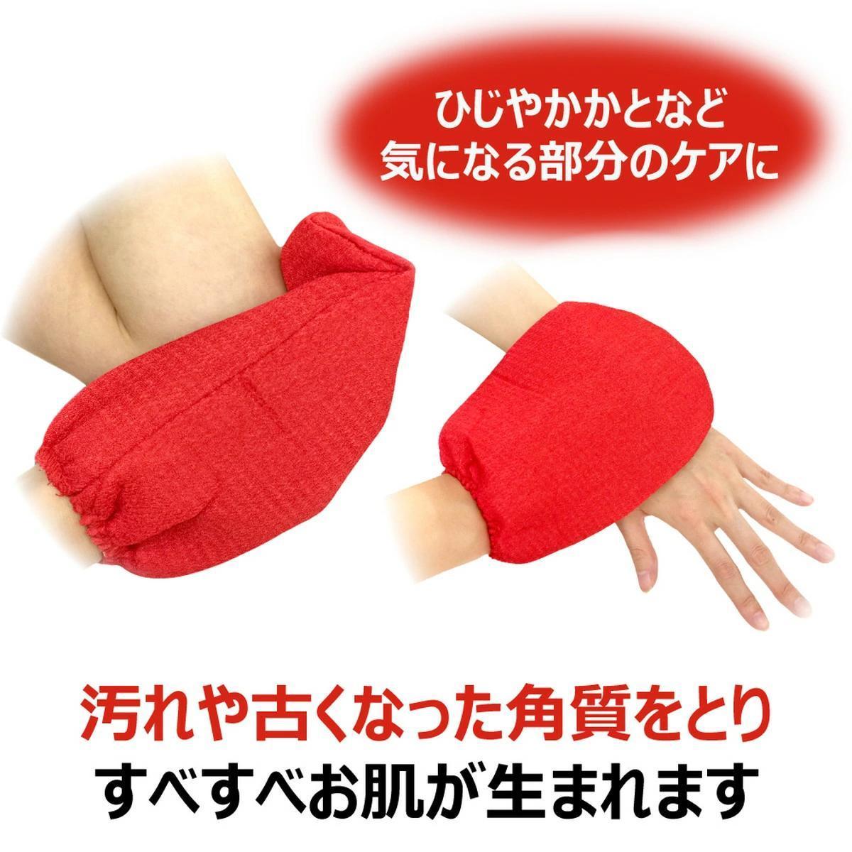 Specially processed rayon yarn shrinks when soaked in water or hot water, scrubbing away dead skin cells. Easy-to-use glove type.