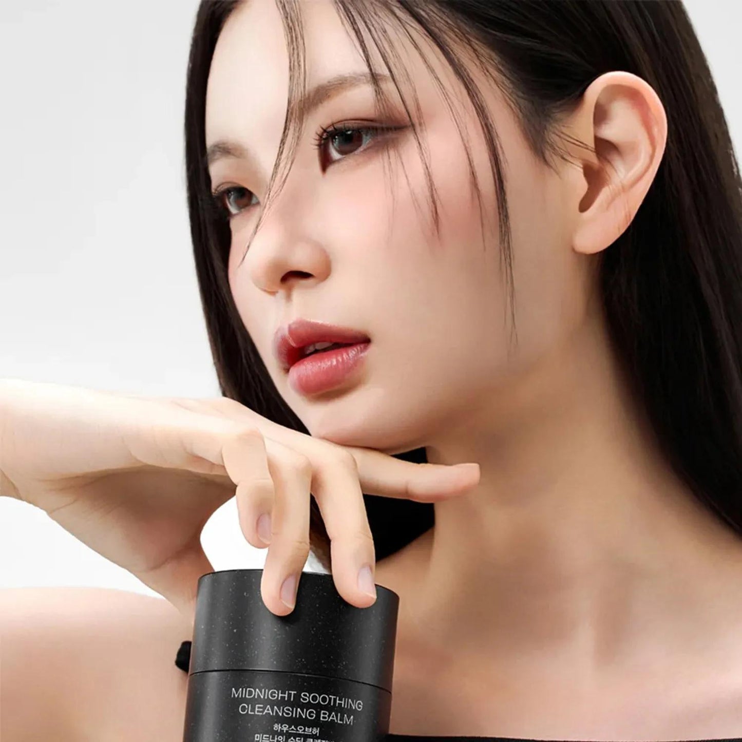 House of Hur's Midnight Soothing Cleansing Balm gently removes makeup and impurities while providing skincare benefits. With its innovative multi-texture formula, it transforms from a sherbet-like texture into a silky oil to dissolve makeup and impurities, leaving skin clean, hydrated, and refreshed. Perfect for sensitive skin, it balances the complexion without any tightness or greasy residue.
