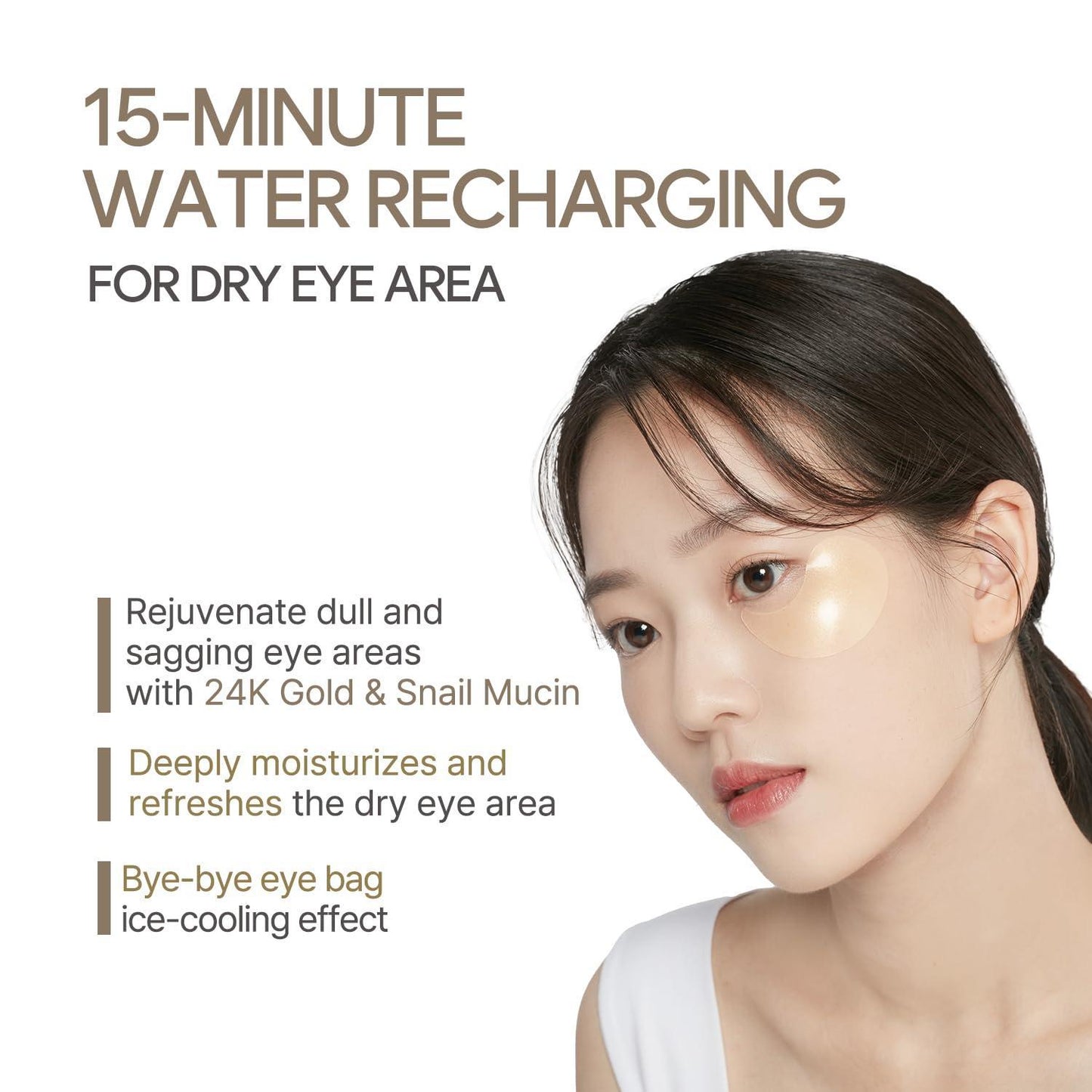 - Gold & Snail Firming Eye Patch : A luxurious jelly-textured hydrogel eye patch that delivers cooling hydration and rich nourishment. The soft, flexible hydrogel hugs the delicate eye area, helping active ingredients absorb comfortably and effectively.